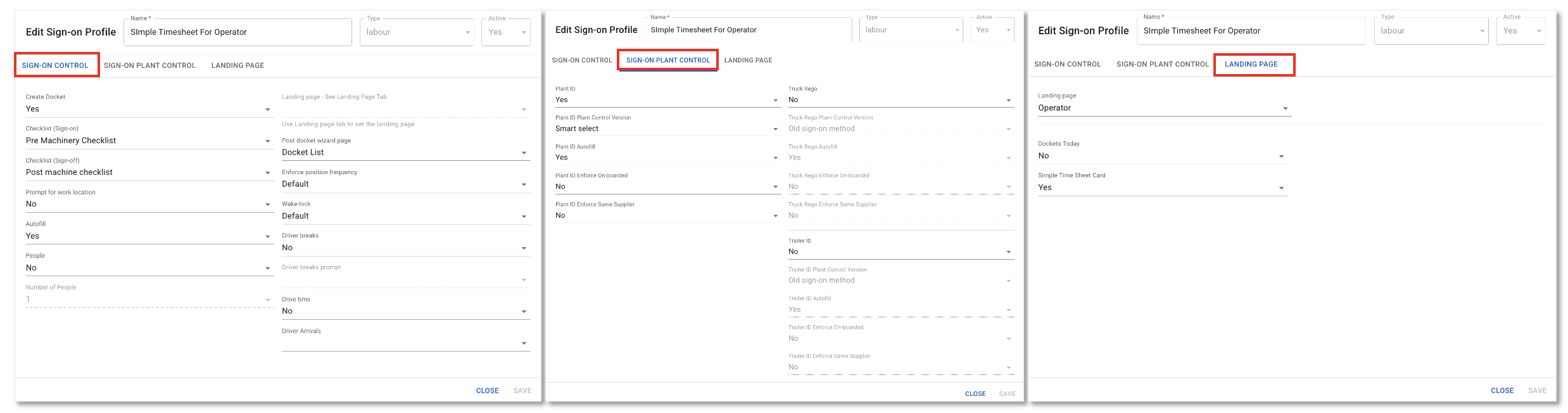 NOTE: Machine Mode is specifically set up for Simple Operator Timesheets, so the specific Operator Timesheets Sign-on Profile must be linked.