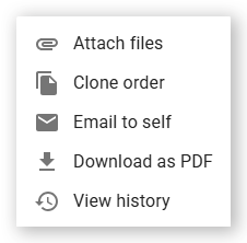 Use the More actions menu to access additional order options. To open this menu, click the hamburger menu icon (three vertical dots).