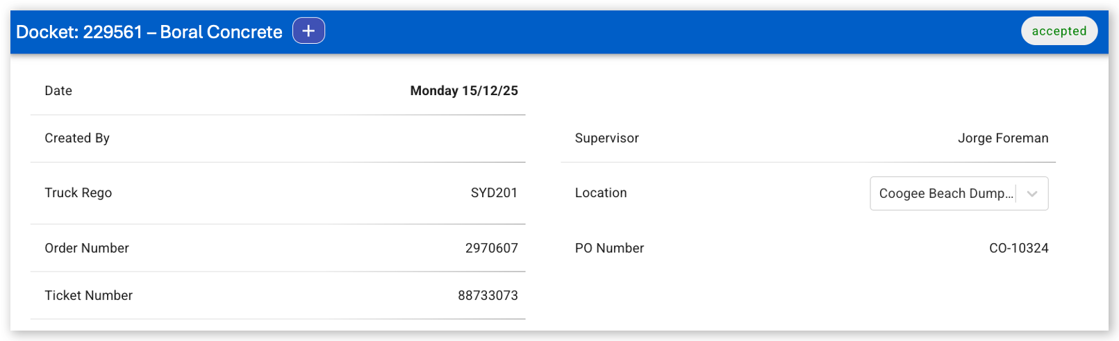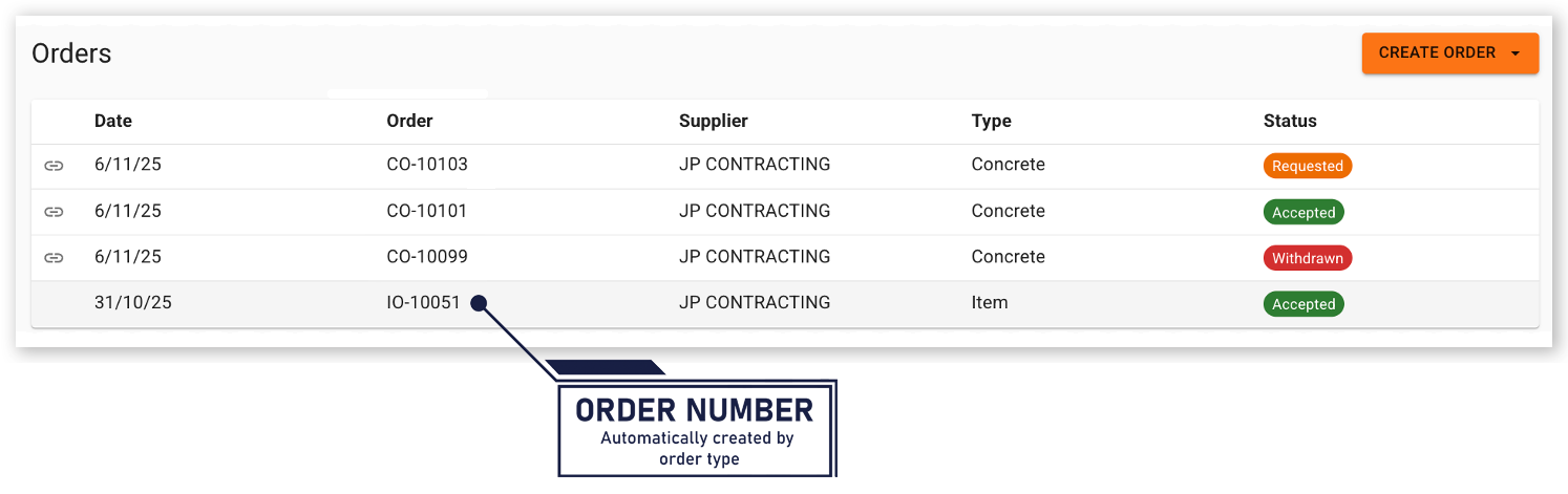 Each order has a unique order number. You can reference this number in dockets or match it to API-generated delivery dockets. This creates a direct link between orders and recorded work.