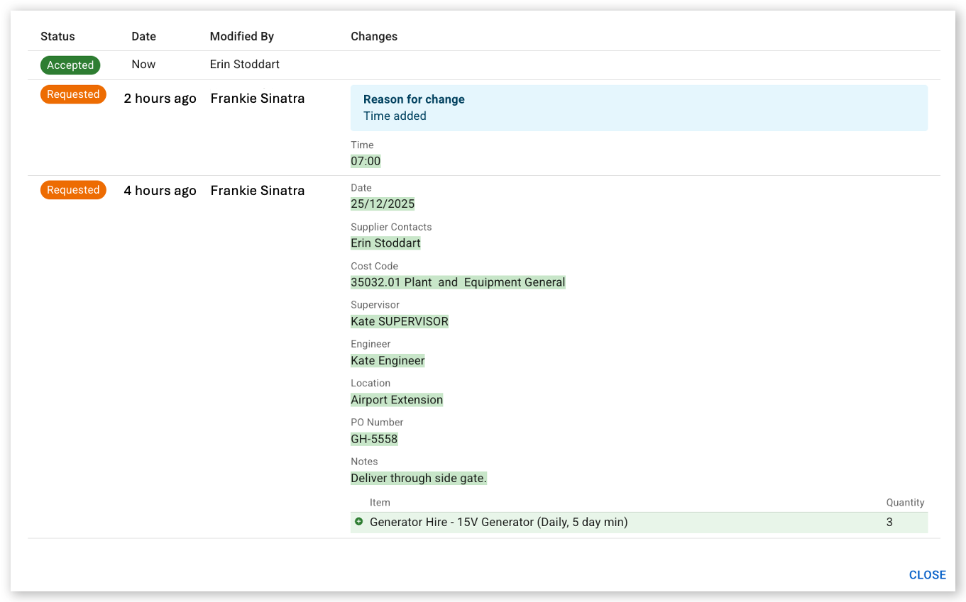 View a timeline of order changes: