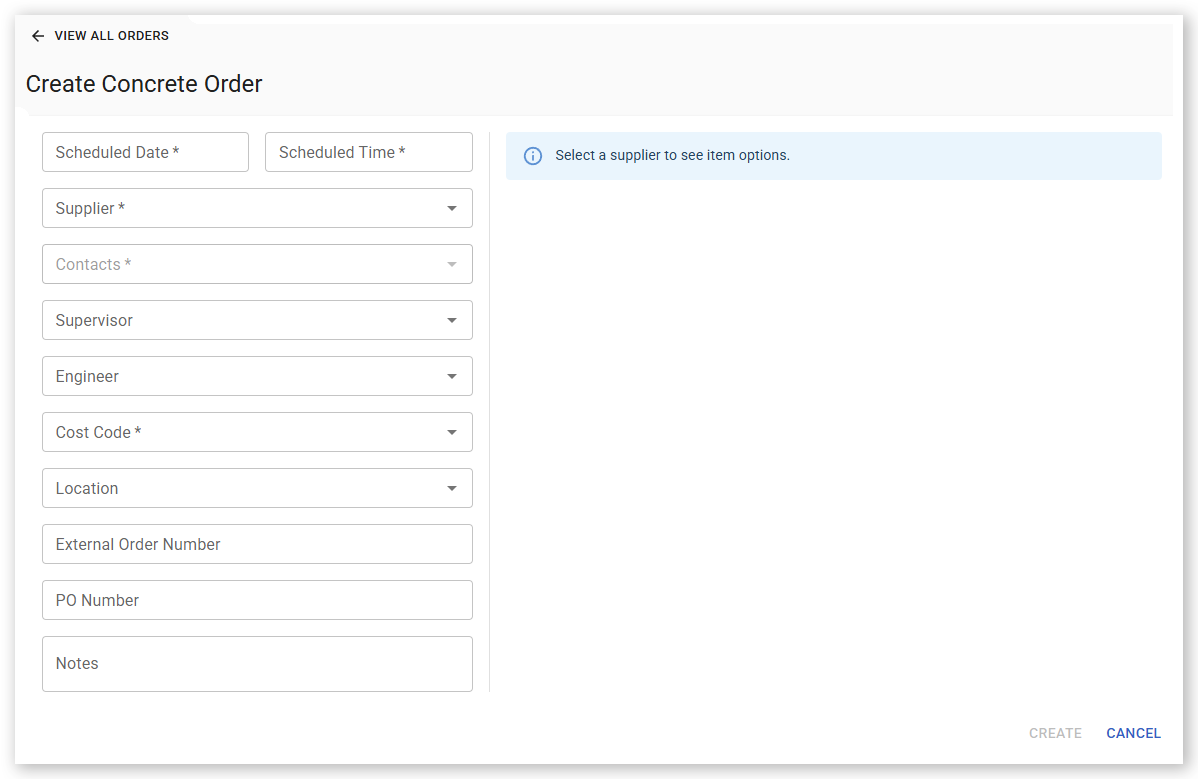 - Concrete orders require Scheduled Time and Cost Code