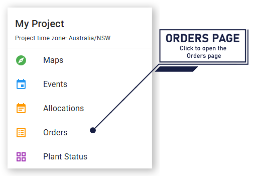 To open the Orders page:
