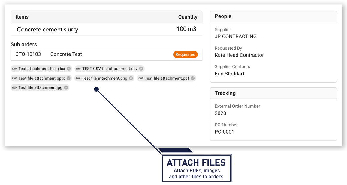 Suppliers assigned to the order can also attach files: